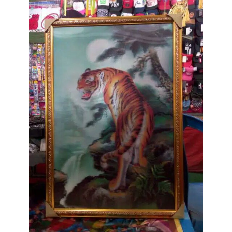Lukisan 3 Dimensi Harimau Frame Ukuran 40x60cm Shopee Indonesia